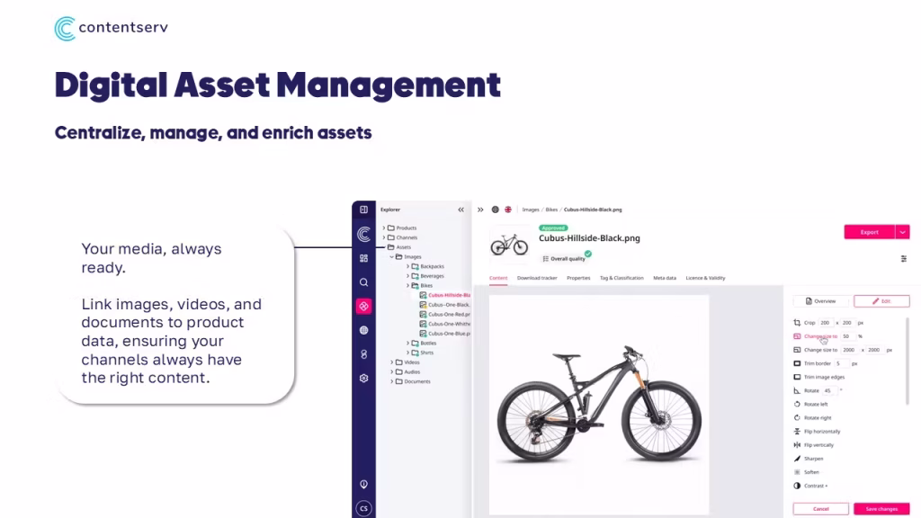 Contentserv offers a comprehensive platform combining PIM, DAM, and marketing workflows with strong governance and localization features. It is designed for global enterprises managing large catalogs across multiple regions and languages.
