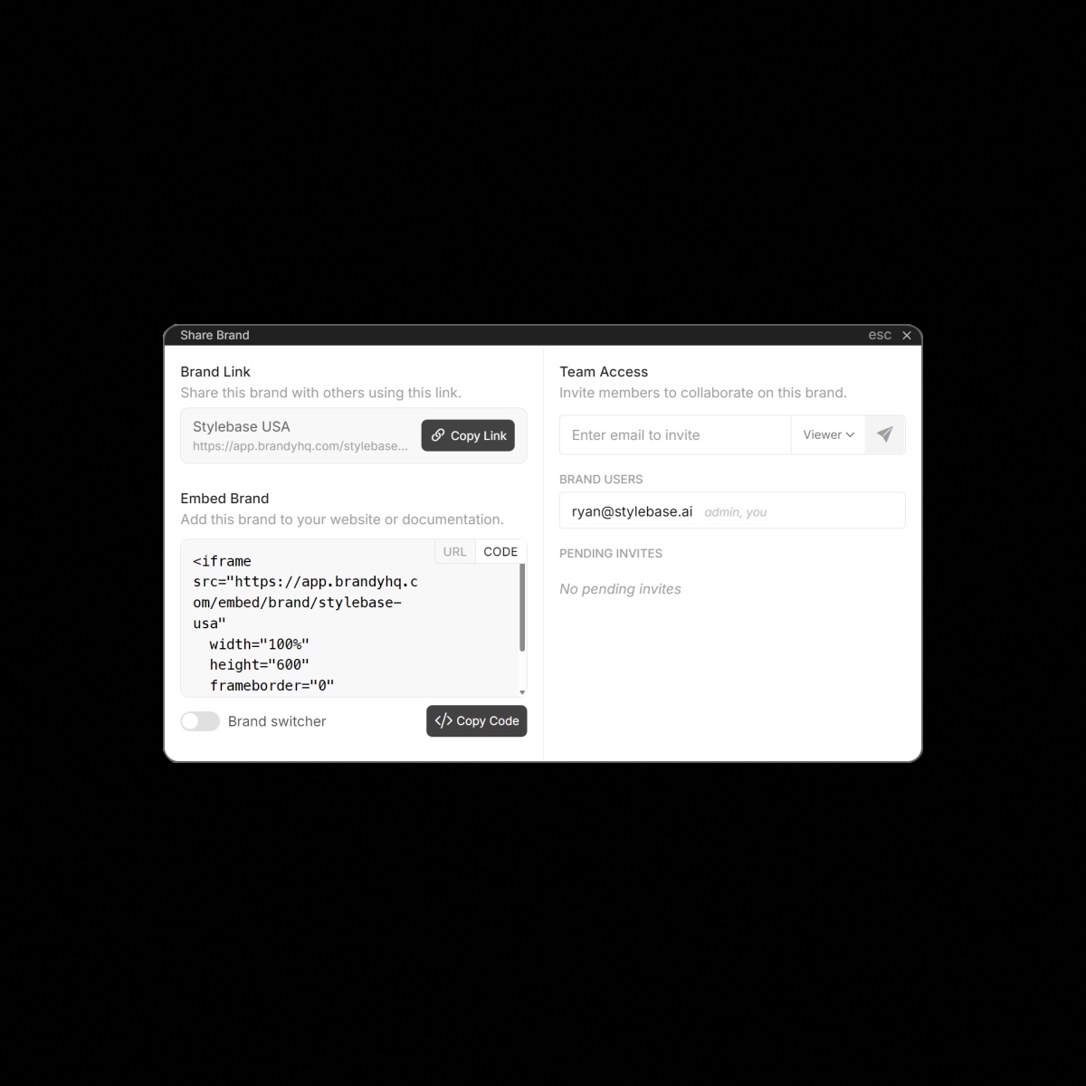 Generate a shareable link to your entire brand space, providing instant access to all your brand assets in one centralized location.